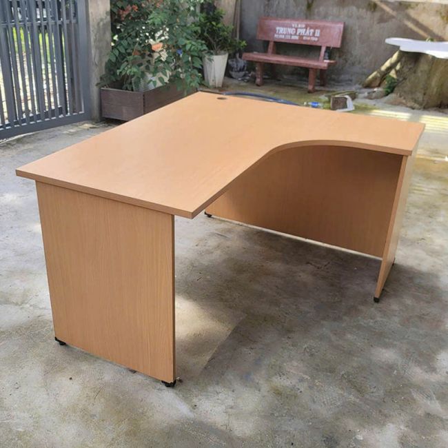 Bàn làm việc gỗ chữ L kích thước 1400 x 1200 x 750 mm (Rộng x Sâu x Cao), thiết kế rộng rãi giúp tối ưu không gian làm việc và sắp xếp hồ sơ, máy tính thuận tiện. Bàn có kiểu dáng hiện đại, chắc chắn, phù hợp sử dụng cho văn phòng hoặc góc làm việc tại nhà.